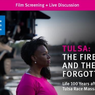 As we approach the centennial of the 1921 Tulsa Race Massacre, we hope you will join Human Rights Watch for a free advance screening (available today through May 10) and live discussion of the film, Tulsa: The Fire and the Forgotten, which will debut on PBS at the end of May. This documentary examines the deadly assault on “Black Wall Street” in the context of other racial massacres and police killings, including the one-year anniversary of the killing of George Floyd (May 25, 2020). Stream the film here, and we encourage you to join the live conversation here on May 5th at 5pm PT.