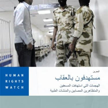 (بيروت) – قالت هيومن رايتس ووتش اليوم إن أشخاص يعملون بالمجال الطبي أدانتهم محكمة عسكرية بزعم ارتكاب جرائم جسيمة أثناء فترة الاحتجاجات المعارضة للحكومة في البحرين مطلع عام 2011 تعرضوا للانتهاكات والتعذيب أثناء الاحتجاز. ونظراً لعدم العدالة الأصيلة في المحاكمة – التي تخص مدنيين حوكموا أمام محكمة عسكرية – فلابد أن تُلغي محكمة الاستئناف العليا البحرينية أحكام إدانة 20 عاملاً بالمجال الطبي عندما تنظر في قضاياهم في 23 أكتوبر/تشرين الأول 2011، من أجل فتح تحقيق مستقل في مزاعم المدعى عليهم بالتعرض للانتهاكات والتعذيب.