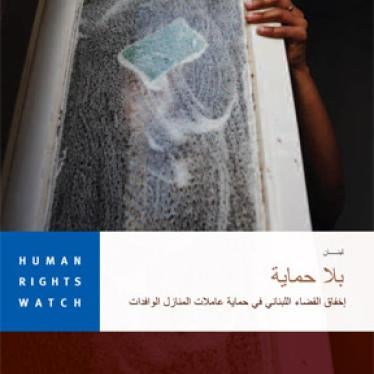(بيروت، 23 مارس/آذار 2012) – قالت ثمان منظمات منالمجتمع المدني اليوم إن على السلطات اللبنانية أن تتحرك سريعاً لإصلاح نظام الكفيللعاملات المنازل ، وأن تتبنى قانوناً للعمل يحميهن ويتصدى لارتفاع معدلات الانتهاكات والوفيات بين عاملات المنازل الوافدات الى لبنان. كما ينبغي على الحكومة أن تنشر نتائج التحقيق في واقعة الإساءة إلى عاليم ديشاسا-ديسيسا، عاملة المنزل الأثيوبية، ثم انتحارها.