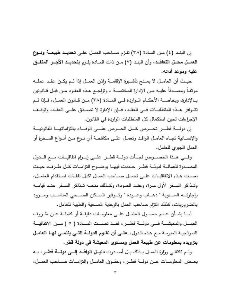 [229] رسالة من وزارة العمل القطرية، 1 نوفمبر/تشرين الثاني 2011، ص 8.
