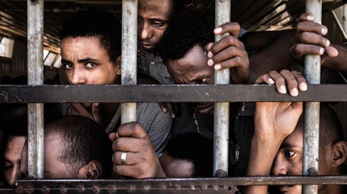 وتحتجز السلطات الليبية، حتى كتابة هذه السطور، من 5000 إلى 10000 مُهاجراً وطالب لجوء في مرافق احتجاز؛ يواجهون فيها التعذيب وغيره من الانتهاكات، من بينها التكدس، وتردي الظروف الصحية، ونقص الوصول إلى الرعاية الطبية الكافية، والمُعاملة اللاإنسانية أو المُهينة. وتعرض الحُراس للمُهاجرين وطالبي اللجوء بالضرب، والجلد بالسياط، وإطفاء السجائر في أجسادهم، والصعق بالكهرباء. وقد أخفقت السلطات في التصدي لهذه الانتهاكات وفي مُحاسبة الجُناة.