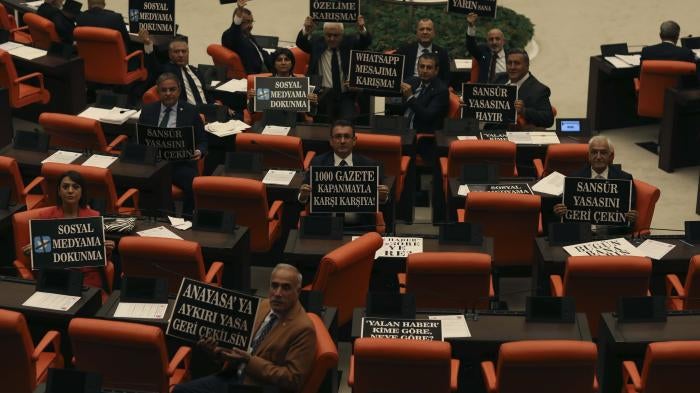 من دواعي القلق بشكل خاص في الفترة التي تسبق انتخابات 2023، حزمة التعديلات القانونية التي أصدرتها الحكومة في أكتوبر/تشرين الأول، والتي شددت الرقابة على المواقع الإخبارية الإلكترونية وشركات التواصل الاجتماعي من خلال إجبارها على الامتثال لطلبات إزالة المحتوى الحكومية أو مواجهة خفض النطاق الترددي (خفض سرعة الإنترنت)، واستحدثت جريمة ذات صياغة غامضة وفضفاضة تتمثل في "نشر معلومات كاذبة"، والتي يُعاقَب عليها بالسجن من سنة إلى ثلاث سنوات. يواجه آلاف الأشخاص كل عام أصلا الاعتقال والمحاكمة بسبب منشوراتهم على وسائل التواصل الاجتماعي، ويُتَهمون عادة بالتشهير، أو إهانة الرئيس، أو إثارة الكراهية، أو نشر دعاية إرهابية.