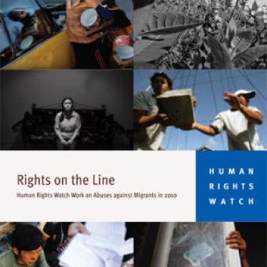 Η 48-σέλιδη συγκεντρωτική έκθεση της Human Rights Watch σχετικά με τις παραβιάσεις των δικαιωμάτων των μεταναστών για το 2010, που φέρει τον τίτλο "Δικαιώματα σε Λεπτή Κλωστή: Το έργο της Human Rights Watch Work για τις Κακομεταχειρίσεις των Μεταναστών το 2010," καλύπτει την Αφρική, την Ασία, την Ευρώπη, τη Μέση Ανατολή και τις Ηνωμένες Πολιτείες.