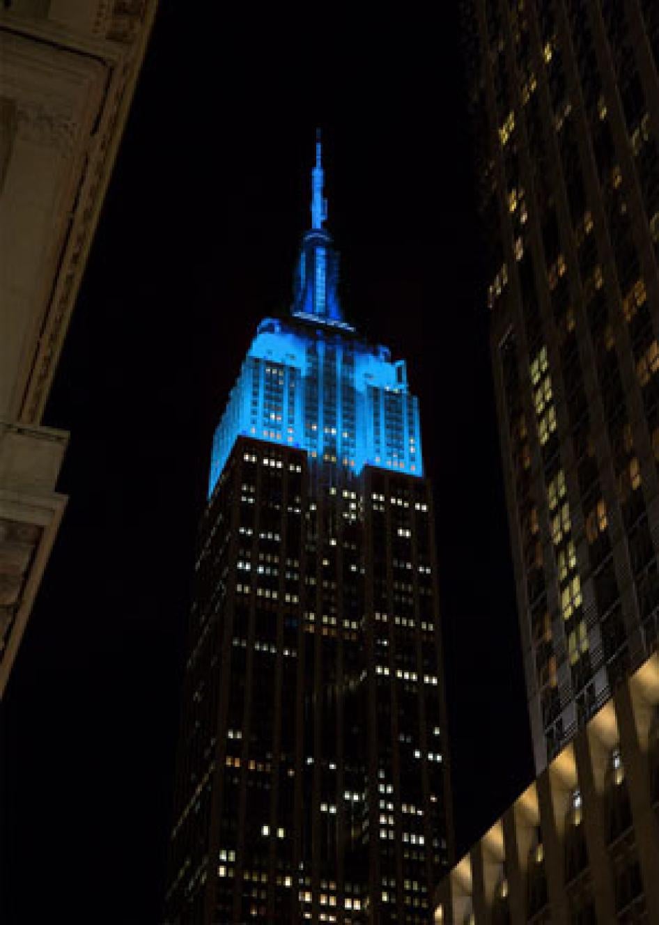 Depuis 2013, l'Empire State Building, fameux dans le monde entier – et qui abrite le siège de Human Rights Watch – est illuminé dans le ton de bleu qui est la couleur de l'organisation pour la commémoration de la Journée des droits de l’homme. Cette année, les sites suivants vont briller de la même couleur bleue :