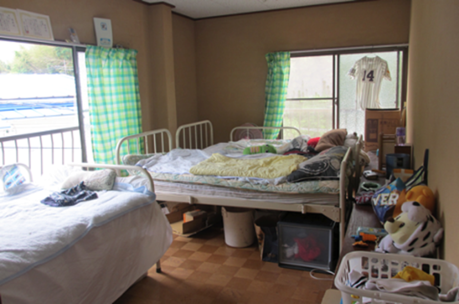 子ども用の寝室(関西地方の児童養護施設)。 10代後半の子どもにも 1人部屋が割り当てられていない。自分だけの場所がない状態だ。 © 2012 Private/ヒューマン・ライツ・ウォッチ