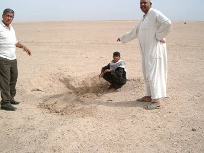 الطوبة، إلى خارج البصرة، وهو الموقع الذي يقول شهود عيان بأنه قد شهد عددا هائلا من عمليات الإعدام والدفن في ربيع العام 1999. وكان باحثو هيومن رايتس ووتش قد قاموا بزيارة الموقع في أيار / مايو 2003 ووجدوا أدلة تشير ما يظهر على أنه بقايا عظام بشرية وملابس. (الحقوق محفوظة لـ هيومن رايتس ووتش).