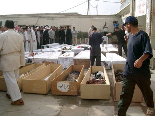 وفي 14 مايو/آيار 2003 تم نقل جميع بقايا الجثث إلى النجف لدفنها، بما فيها خمس جثث لم يتم التعرف على هويات أصحابها. وبدون فحص الطب الشرعي الملائم فإن هذه الجثث قد اصطحبت معها إلى القبر أية معلومات كان يمكن أن تقدمها بشأن هويات أصحابها أو طريقة موتهم.