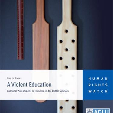 In the 125-page report, "A Violent Education: Corporal Punishment of Children in US Public Schools," the ACLU and Human Rights Watch found that in Texas and Mississippi children ranging in age from 3 to 19 years old are routinely physically punished for minor infractions such as chewing gum, talking back to a teacher, or violating the dress code, as well as for more serious transgressions such as fighting. Corporal punishment, legal in 21 states, typically takes the form of “paddling,” during which an administrator or teacher hits a child repeatedly on the buttocks with a long wooden board. The report shows that, as a result of paddling, many children are left injured, degraded, and disengaged from school.