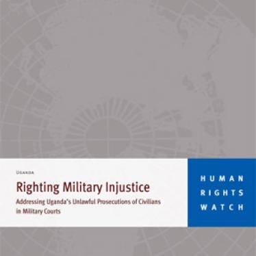 The 27-page report, “Righting Military Injustice: Addressing Uganda’s Unlawful Prosecutions of Civilians in Military Courts,” documents the pattern of trials of civilians before military courts, the ways in which such trials violate international legal principles, and the steps Uganda should take to address these fair-trial violations. Since 2002, military courts in Uganda have prosecuted over 1,000 civilians on charges under the criminal code, such as murder and armed robbery. A 2006 Ugandan Constitutional Court ruling, upheld on appeal in 2009 before the Supreme Court and consistent with international law, that military courts are not competent to try civilians accused of common crimes has not been enforced.