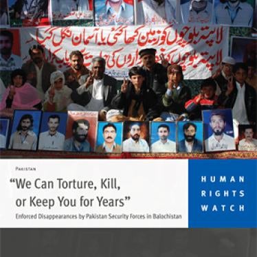The 132-page report, “‘We Can Torture, Kill, or Keep You for Years’: Enforced Disappearances by Pakistan Security Forces in Balochistan,” documents dozens of enforced disappearances,in which the authorities take people into custody and then deny all responsibility or knowledge of their fate or whereabouts. The report details 45 alleged cases of enforced disappearances, the majority in 2009 and 2010. While hundreds of people have been forcibly disappeared in Balochistan since 2005, dozens of new enforced disappearances have occurred since Pakistan returned to civilian rule in 2008.