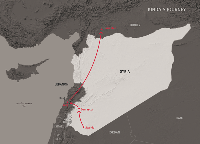 Originally from the primarily Druze city of Sweida in southwestern Syria, Kinda lived most of her life in Damascus, where she worked in a ticketing office for a tourist agency. It was the government’s May 2012 offensive in Houla that killed over 100 residents, most of them women and children, that drove Kinda, then 26, to begin protesting.
