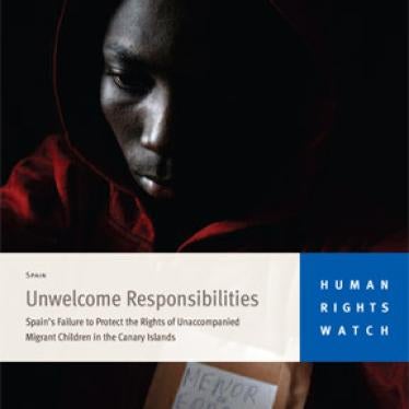 O relatório de 115 páginas, Unwelcome Responsibilities: Spain’s Failure to Protect the Rights of Unaccompanied Migrant Children in the Canary Islands (Responsabilidades indesejadas: O fracasso da Espanha em proteger os direitos de crianças migrantes desacompanhadas nas Ilhas Canárias), documenta como as crianças ficam nesses centros, geralmente superlotados e em fracas condições, por períodos indefinidos. As crianças disseram à Human Rights Watch que apanharam dos funcionários e que são que deixadas sem defesa contra a violência de seus semelhantes. As crianças não têm acesso à educação pública, têm poucas oportunidades de recreação e lazer, e também têm sua liberdade de movimento indevidamente restringida.