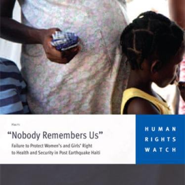 O relatóriode 78 páginas,intitulado, "'Ninguém se lembra de nós': Falhas naProteção do Direito das Mulheres e Meninas à Saúde e Segurança no Haiti Pós-Terremoto," documenta a falta de acesso à saúde reprodutiva e materna no Haitiapós o terremoto de 2010,apesar da disponibilidade sem precedentes de serviços de saúde gratuitos no país. O relatório também descreve como a fome levou mulheres a trocar sexo por comida e como as más condições nos acampamentos exacerbam o impacto da violência sexual devido às dificuldades de acesso a cuidados necessários após um estupro. O relatório analisa a forma como os esforços de recuperação falharam em atender adequadamente às necessidades e direitos das mulheres e meninas, especialmente os seus direitos à saúde e segurança. As autoridades haitianas e os doadores devem tomar medidas concretas para melhorar o acesso aos serviços e proteger os direitos humanos destas mulheres e meninas, disse a Human Rights Watch.