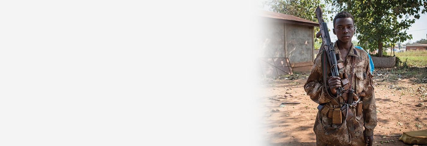 Milhares de crianças servem como soldados em conflitos armados ao redor do mundo ou estão atualmente detidas como ameaças à segurança nacional, muitas vezes por suposta associação com chamados grupos “terroristas” ou grupos violentos extremistas. Esses meninos e meninas, alguns com apenas 8 anos de idade, servem nas forças governamentais e grupos de oposição armada. Eles podem lutar nas linhas de frente, participar de missões suicidas e atuar como espiões, mensageiros ou vigias. Meninas podem ser forçadas à escravidão sexual. Muitos são sequestrados ou recrutados à força, enquanto outros se juntam por desespero, acreditando que os grupos armados oferecem sua melhor chance de sobrevivência. Estamos trabalhando para prevenir o uso de crianças-soldados e responsabilizar aqueles que enviam crianças para o combate.