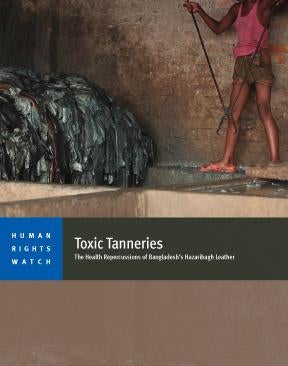 This report documents an occupational health and safety crisis among tannery workers, both men and women, including skin diseases and respiratory illnesses caused by exposure to tanning chemicals, and limb amputations caused by accidents in dangerous tannery machinery.