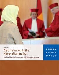 This 67-page report is based on extensive research over an eight-month period. It analyzes the human rights implications of the bans and their effect on the lives of Muslim women teachers, including those who have been employed for many years. It says that the bans have caused some women to give up their careers or to leave Germany, where they have lived all their lives.