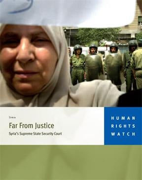 In this 73-page report, Human Rights Watch documents how the SSSC has relied on sham trials to prosecute at least 153 defendants since January 2007 on the basis of vague charges that criminalize freedom of expression. Those prosecuted include 10 bloggers, 16 Kurdish activists, and eight citizens accused of "insulting the Syrian president" in private conversations.