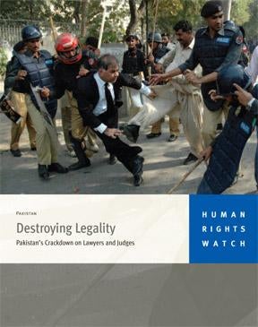 This 84-page report presents eyewitness accounts of police violence, arbitrary arrests, and mistreatment of detained lawyers across Pakistan since November 3, 2007. The report details police beatings of lawyers peacefully protesting government policies from within the grounds of Pakistan’s high courts. It is the most detailed account to date of the November crackdown, showing how Musharraf used the emergency as an excuse to disempower the judiciary, the legal profession and civil society in the name of fighting terrorism and Islamic extremists.