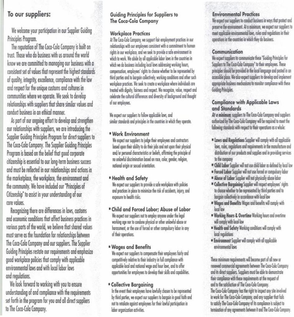 [273] Guiding Principles for Suppliers to the Coca-Cola Company (2002), p. 1.