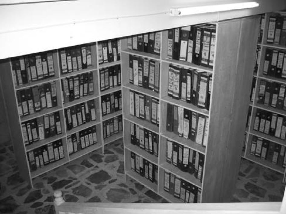 During its visit to the offices of the Association of Free Prisoners in August 2003, Human Rights Watch was shown into a garage space where thousands upon thousands of documents were piled up on top of each other in haphazard fashion, mountain-like, reaching almost to the ceiling.The floor was strewn with other documents such that anyone walking into the room would necessarily step over them.Papers from individual files had come become loose, others were torn or otherwise destroyed, and photographic materials had also become detached from their original files.The director of the League of Iraqi Political Prisoners told Human Rights Watch that "at the beginning we were nave because we used to give original files to individuals or families who came to ask for information on missing relatives, then we realized that we were absolutely wrong and stopped giving out files.On the contrary, our policy now is trying to obtain as many documents from the families themselves."[26]
