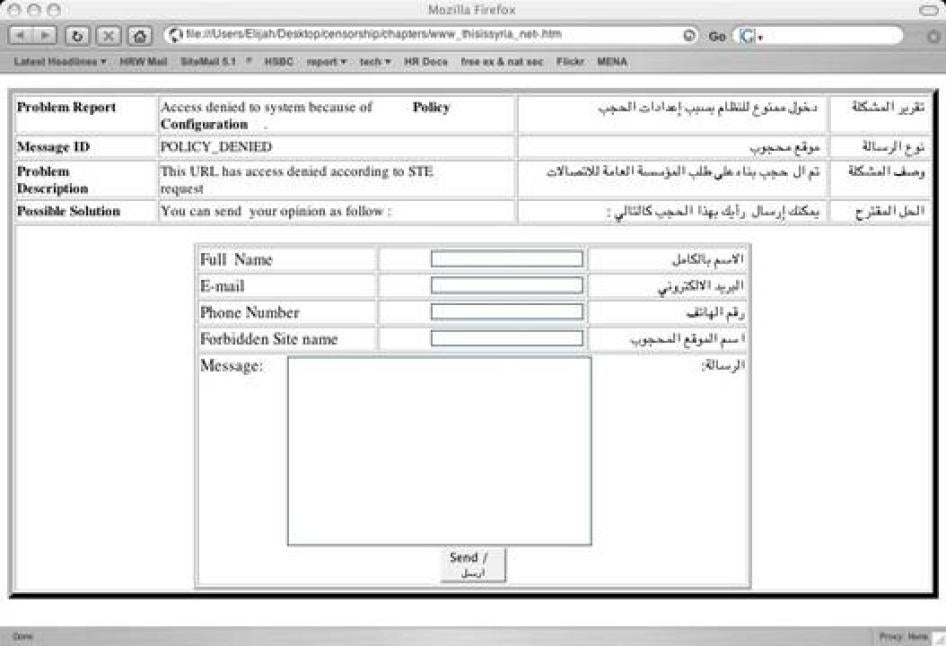[320] Reporters sans frontières, The Internet Under Surveillance, 2004: Syria,http://www.rsf.org/article.php3?id_article=10767, accessed October 27, 2005.