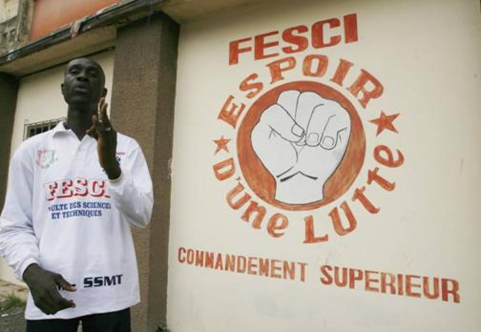 ·Issue clear public orders to the police and other security forces to ensure that FESCI and other student groups, regardless of their political affiliations, are brought within the scope of the law and cannot act with impunity.