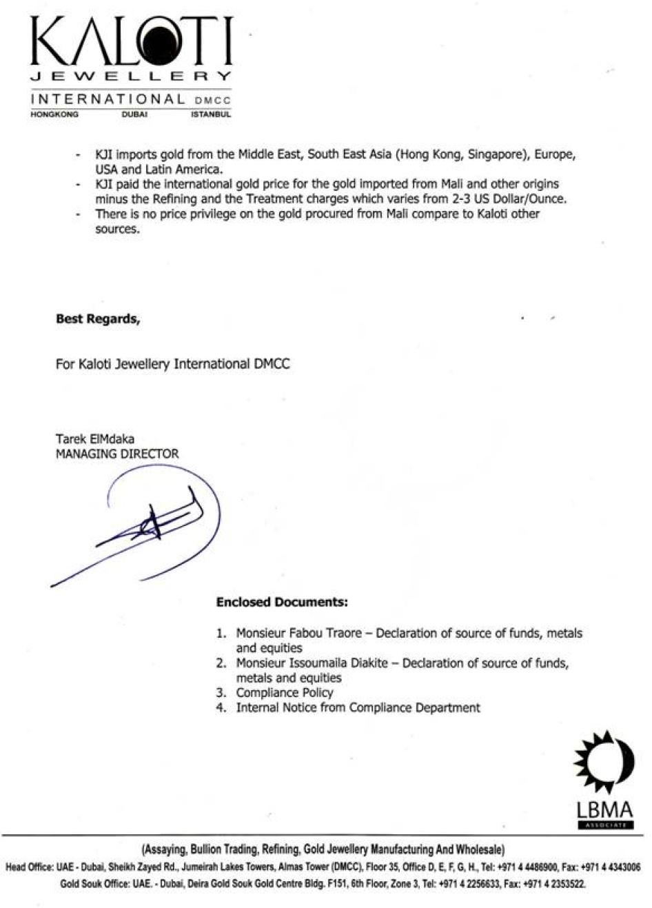 [377] Letter from Tareq El-Mdaka, Managing Director, Kaloti Jewellery International DMCC, to Human Rights Watch, July 30, 2011.