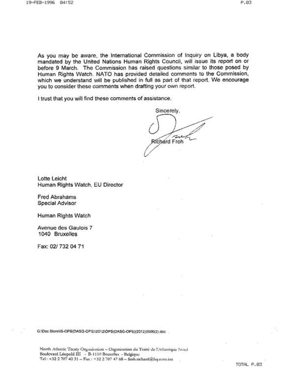 [48] Letter to Philippe Kirsch from NATO legal advisor Peter Olson, January 23, 2012, Report of the International Commission of Inquiry on Libya, Annex II.