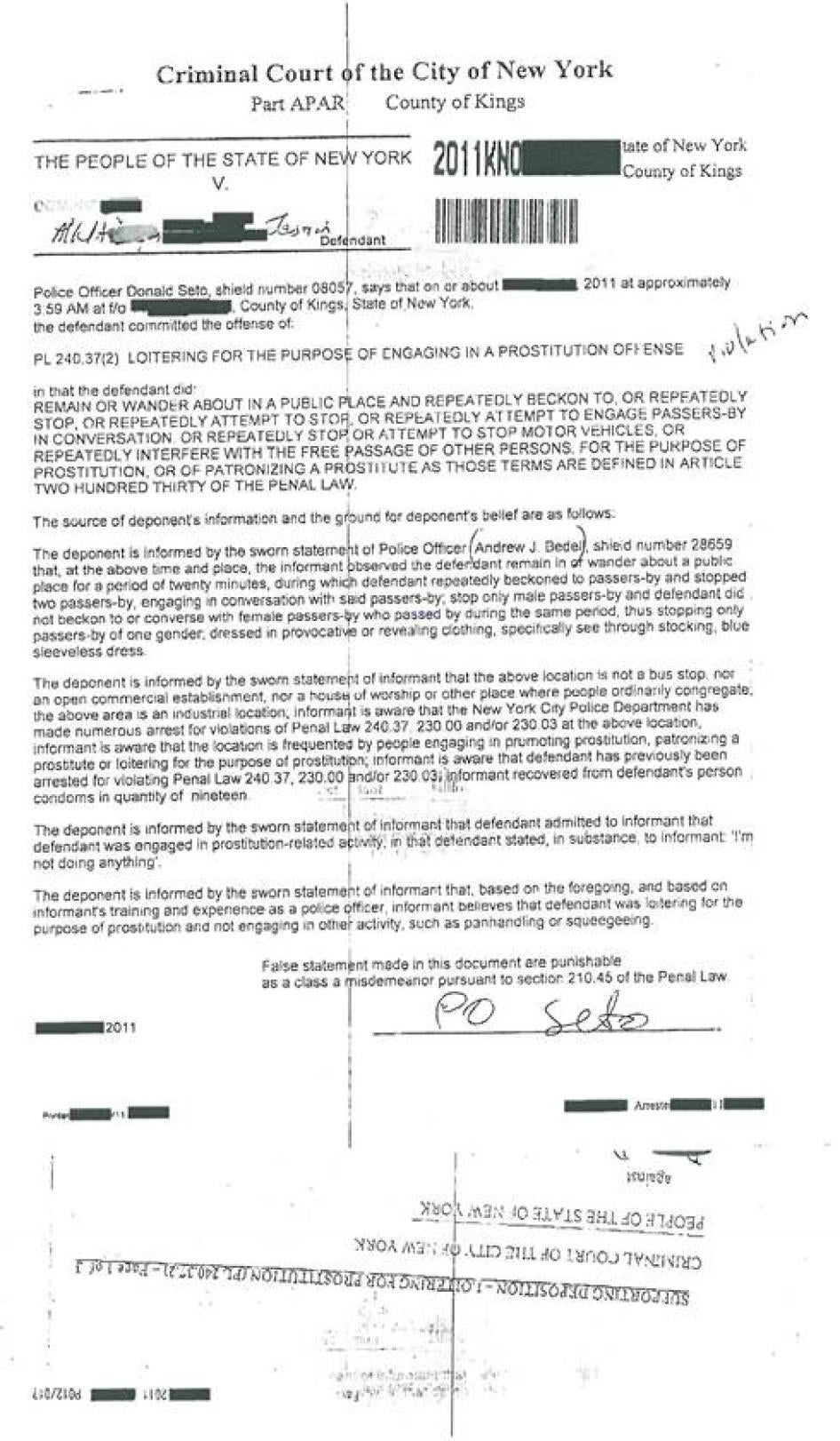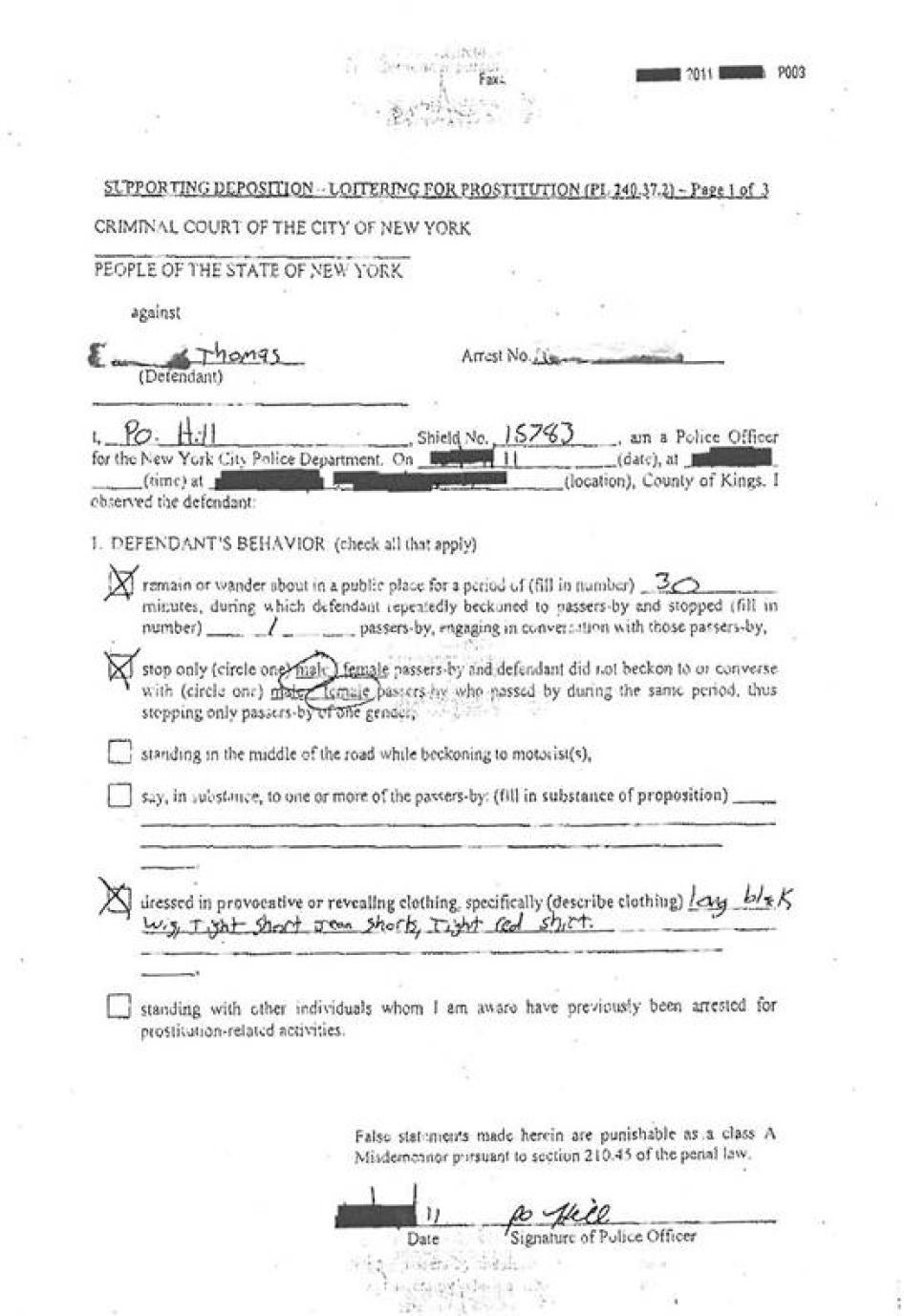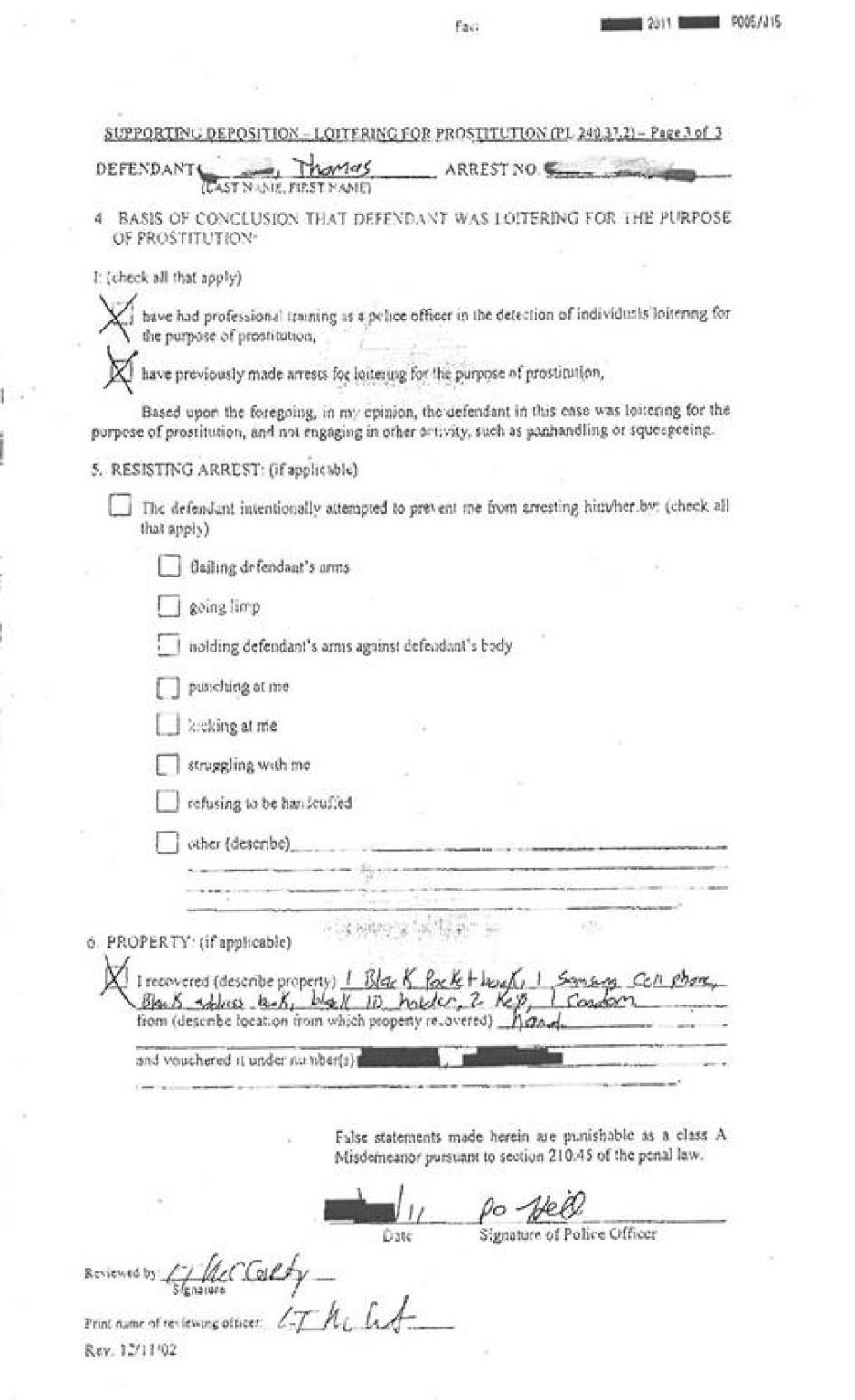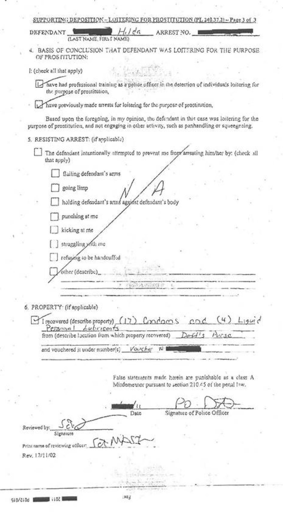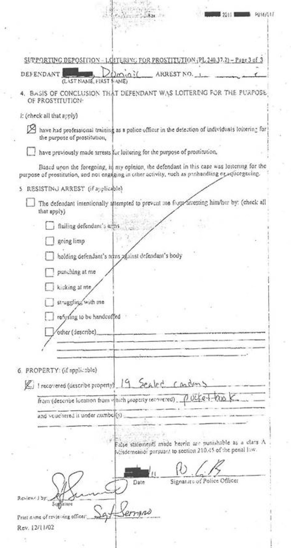 From January through November 2011 the New York City Police Department (NYPD) made 4,054 arrests for prostitution-related offenses.[31] This included 1, 899 prostitution cases (targeting the alleged provider of sex) and 1,192 arrests targeting alleged patrons of prostitutes. Six hundred and nineteen arrests were made for “loitering for the purpose of engaging in a prostitution offense.”[32]The vast majority of these arrests are disposed of without trial, primarily through plea bargaining or proceeding under a conditional discharge, usually requiring participation in a substance abuse or other “diversion” program.[33]