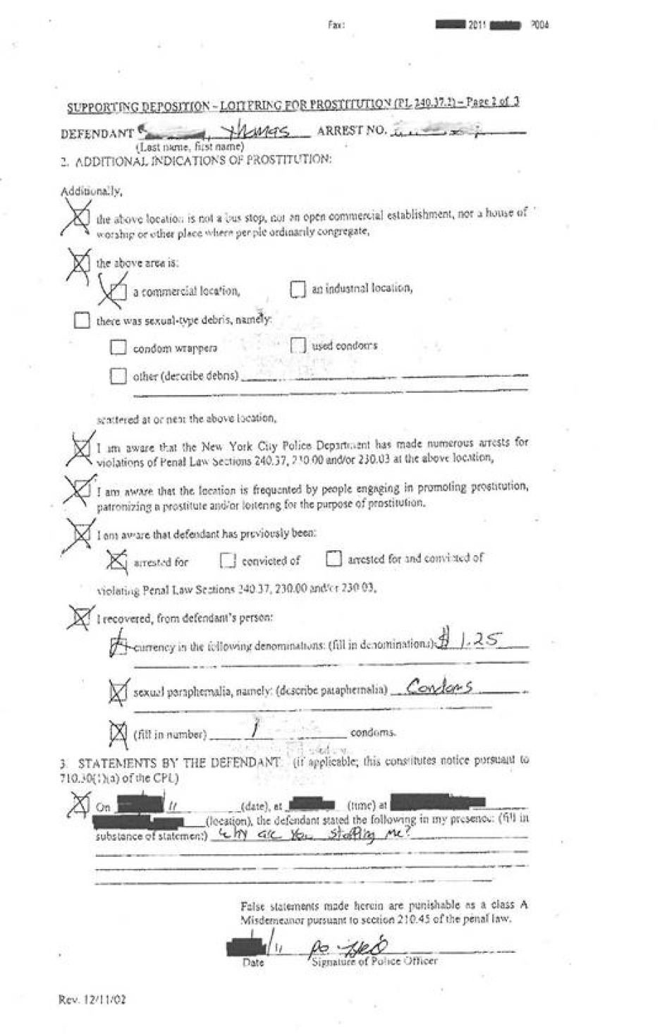 If I took a lot of condoms, they would arrest me. If I took a few or only one, I would run out and not be able to protect myself. How many times have I had unprotected sex because I was afraid of carrying condoms? Many times. –Anastasia L., sex worker, New York City, March 22, 2012