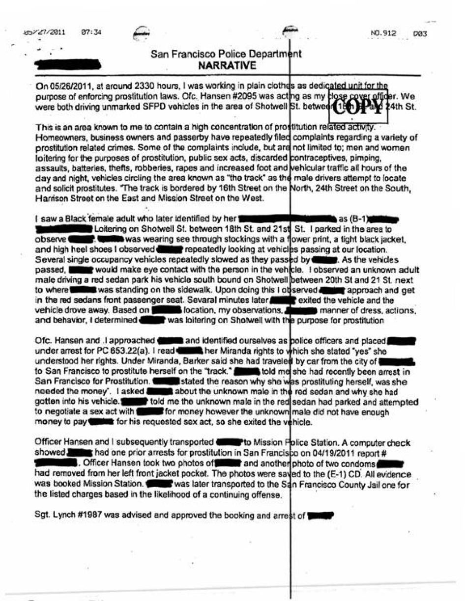 [234] Human Rights Watch telephone interview with Lt. Jason Fox, San Francisco Police Department, San Francisco, May 2, 2012; Jason Winchell, “Bay Area Agencies Improvise Tactics to Battle Trafficking,” San Francisco Public Press, February 15, 2012; Jason Winchell, “After Anti-trafficking Team Shifted Focus to Prostitution Arrests, Police Retool Investigations,” San Francisco Public Press, November 30, 2011.