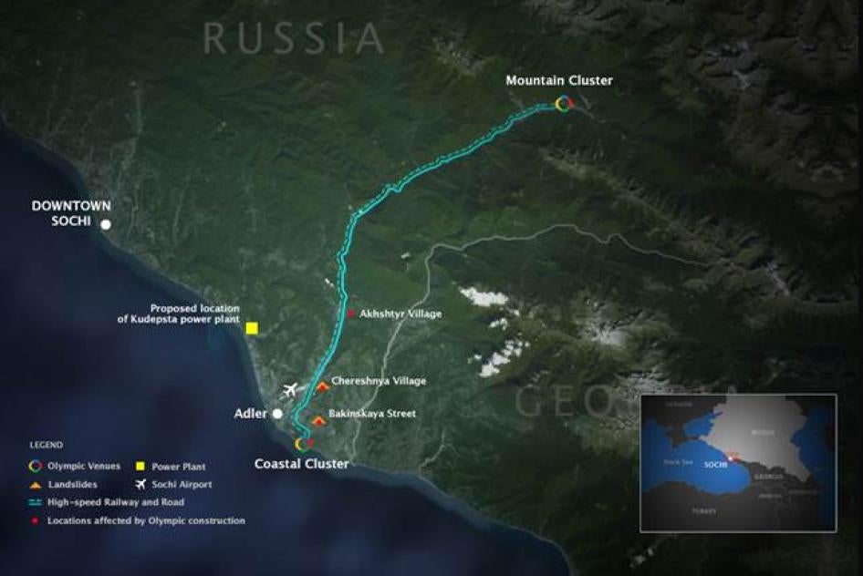 - “Creating Sochi Olympic site comes at high cost for local residents,” February 28, 2013, http://www.hrw.org/news/2013/02/28/creating-sochi-olympic-site-comes-high-cost-local-residents