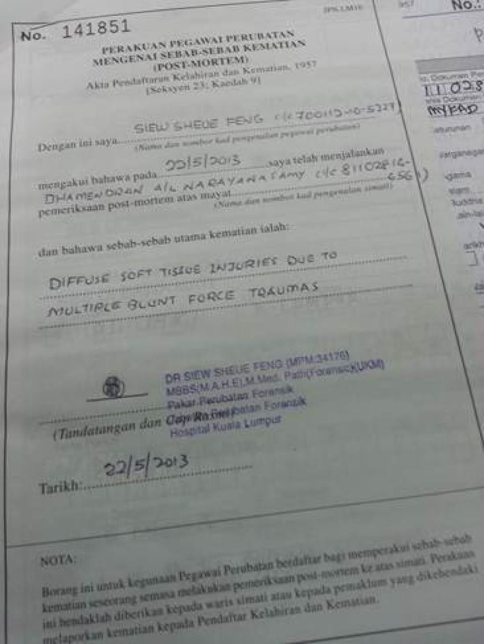 [292] Human Rights Watch interviews with SUHAKAM commissioners and investigators, Kuala Lumpur, April and May, 2012.