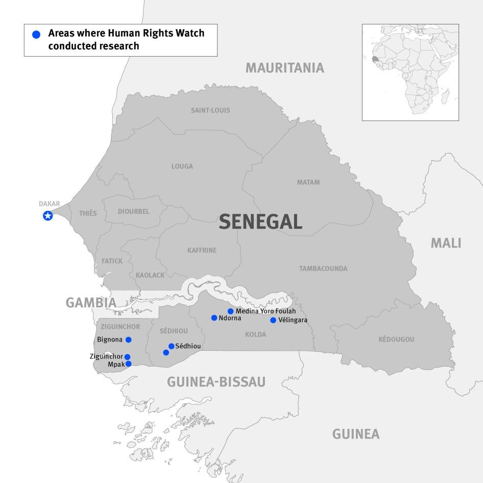 This report is based on research conducted in June, August, October and November 2017, and July 2018, in the regions of Kolda, Sédhiou and Ziguinchor, as well as in and around the capital, Dakar. Human Rights Watch chose these regions because they have some of the highest rates of teenage pregnancy in the country, as well as high levels of child marriage and low secondary school retention, according to United Nations and government figures. We also consulted local and national nongovernmental organizations (NGOs), many of whom shared information or evidence from their existing programming assisting children affected by sexual and gender-based violence in these regions.