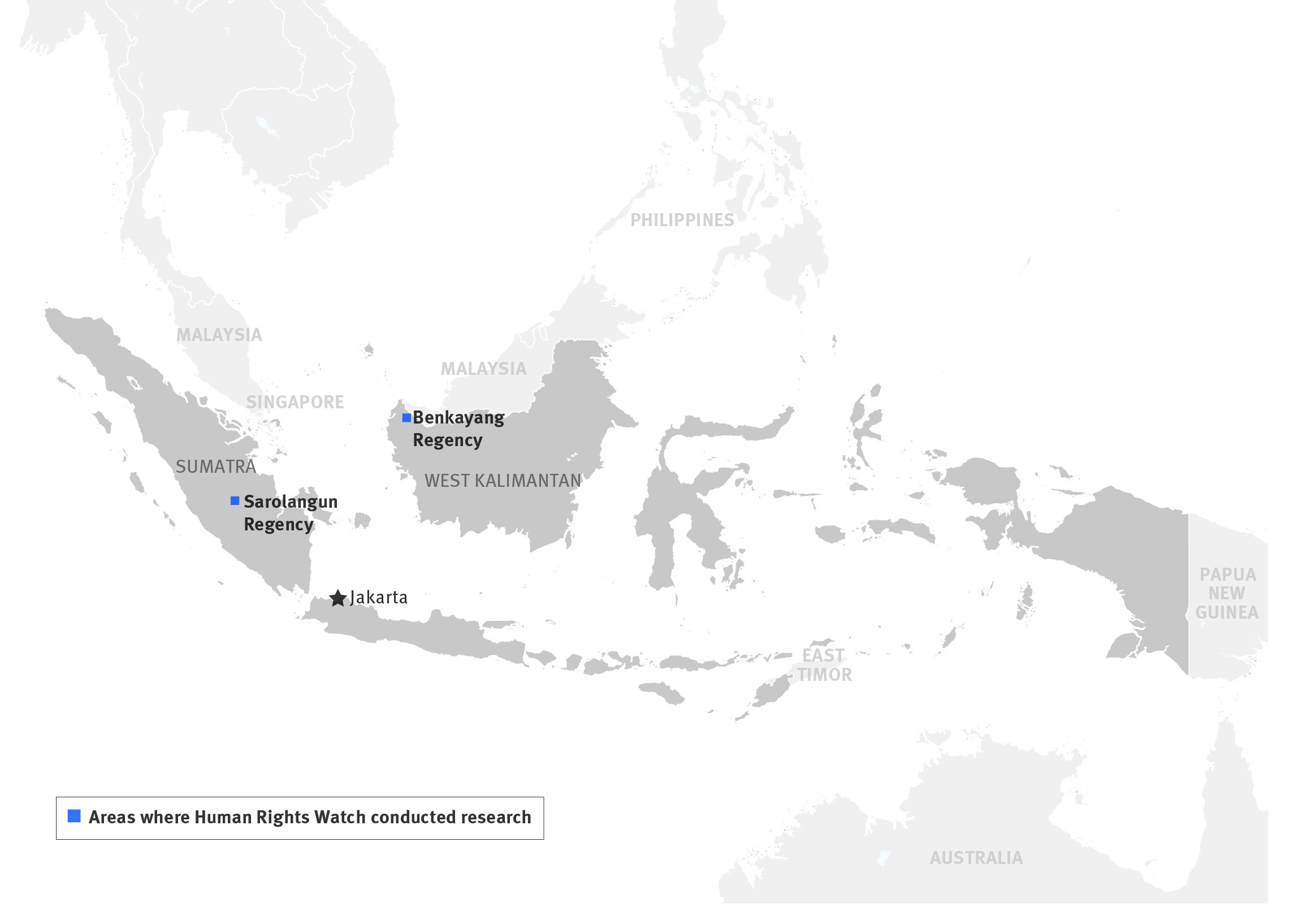 Josh Lyons, director of geospatial analysis, and Carolina Jorda Alvarez, geospatial analyst, at Human Rights Watch, produced satellite images and maps for the report. Report production was done by Remy Arthur, publications associate. Erika Nguyen, coordinator in the Women’s Rights Division, provided production assistance and support. The report was prepared for publication by Fitzroy Hepkins, senior administration manager. Multimedia production was coordinated by Sakae Ishikawa, senior video editor/producer, and Jessie Graham, deputy multimedia director; and Pailin Wedel, multimedia producer, who shot photos and video in Indonesia to accompany the report.
