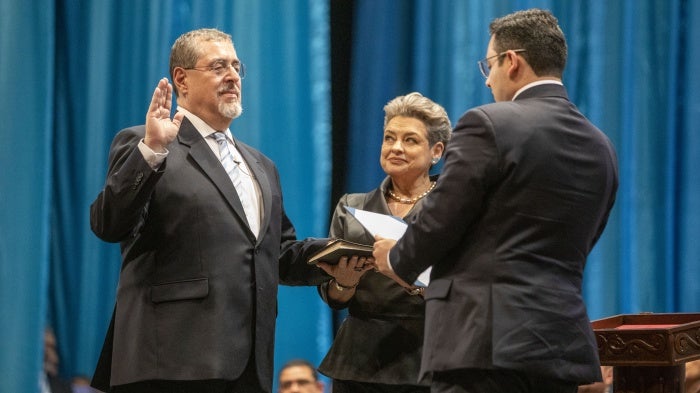 Bernardo Arévalo, Guatemala’s president, is sworn in during the inauguration ceremony in Guatemala City, Guatemala, January 15, 2024.